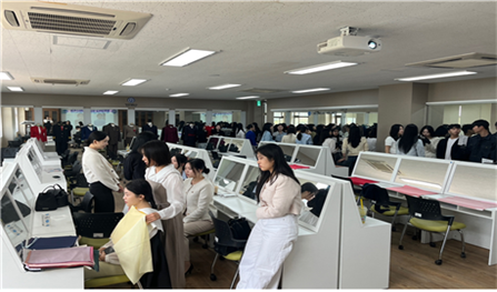 ▲ 이미지메이킹실에서 퍼스널 컬러 특강을 진행하는 모습 / 출처 : 항공서비스학과 홈페이지