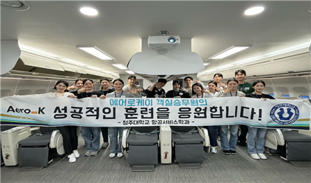 Aero K Airlines is responding to students in the Department of Airline Service at our university by providing practical training opportunities at actual industrial sites, including Cheongju Airport. Through this virtuous cycle, the Department of Airline Service at our university provides a high level of education that is differentiated from other schools.