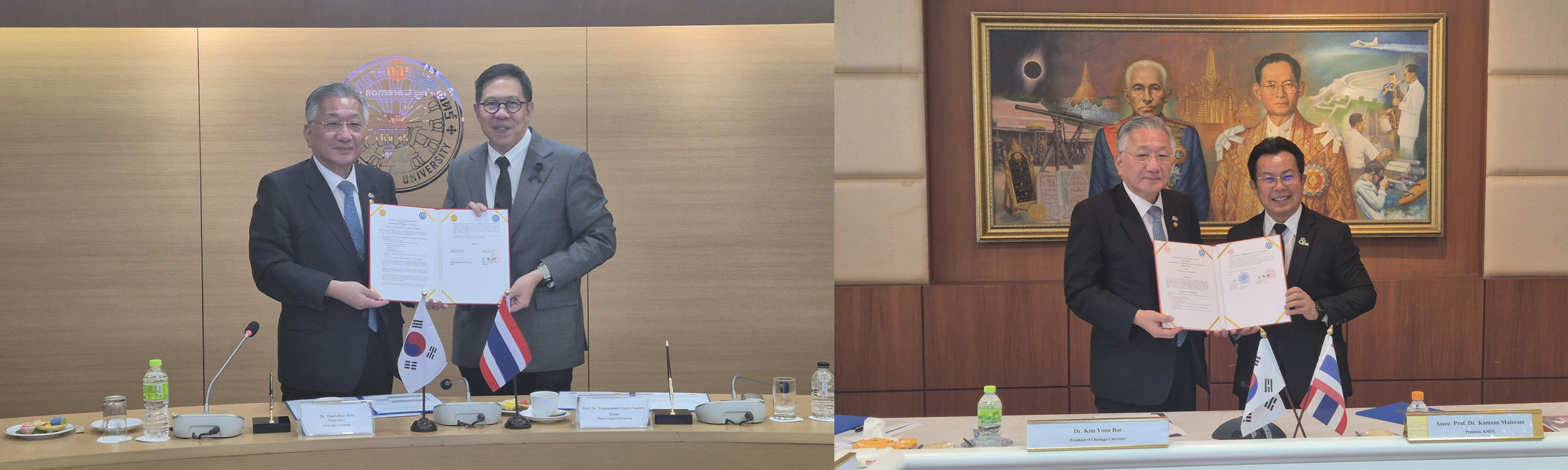 이날 열린 탐마삿대학교 협정식에는 수파사왓 차드차와른 총장을 비롯한 대학 관계자 6명이, KMITL대학교와의 협정식에는 콤산 말리시 총장을 비롯한 대학 관계자 4명이 참석했다.