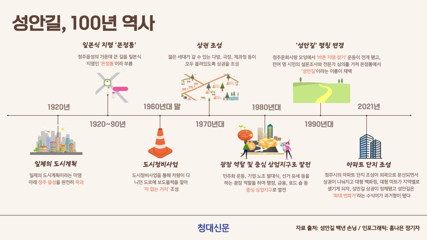▲성안길 100년의 역사를 담은 인포그래픽 / 인포그래픽=홍나은 정기자