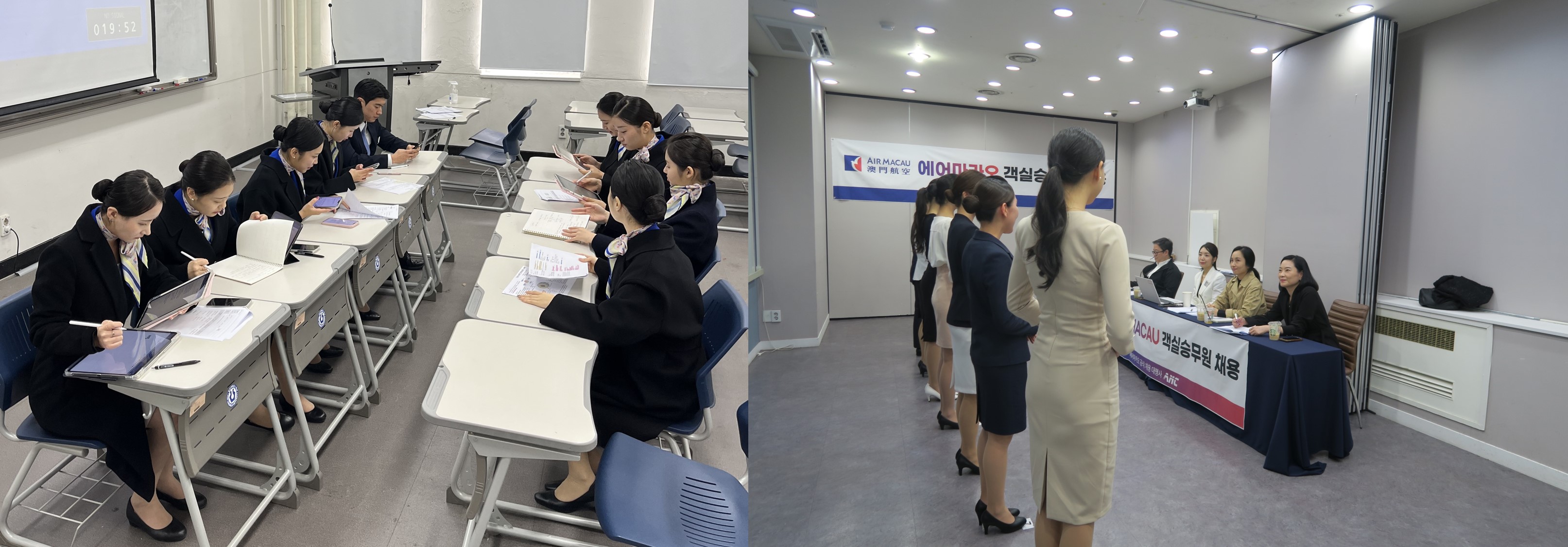 청주대학교는 앞으로도 중동 및 아시아 항공사와의 채용 연계를 확대하고, 합격자–후배 연계를 통한 멘토링 선순환 구조를 구축해 지역 청년의 글로벌 항공산업 진출을 적극 지원할 계획이다. 사진설명(1) : 청주대학교에서 항공서비스학과 학생들이 수업 시간을 이용해 취업을 위한 자기소개서를 작성하는 법을 익히고 있다. 사진설명(2) : 청주대학교 항공서비스학과 홍명수(맨 오른쪽) 교수가 항공사 면접관으로 활동하는 모습이다.