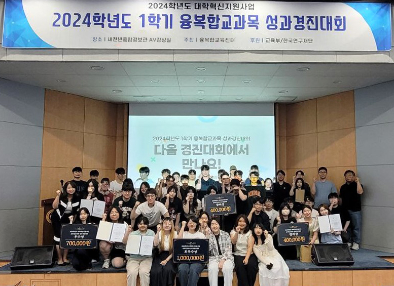 우리대학은 지난달 1일, ‘2024학년도 1학기 융복합교과목 성과경진대회 및 시상식’을 개최했다. 이번 융복합교과목 성과경진대회 및 시상식은 최근 융복합교육센터에서 운영하는 교과목의 우수사례를 공유하고 확산하기 위해 학내 새천년종합정보관에서 진행됐다.