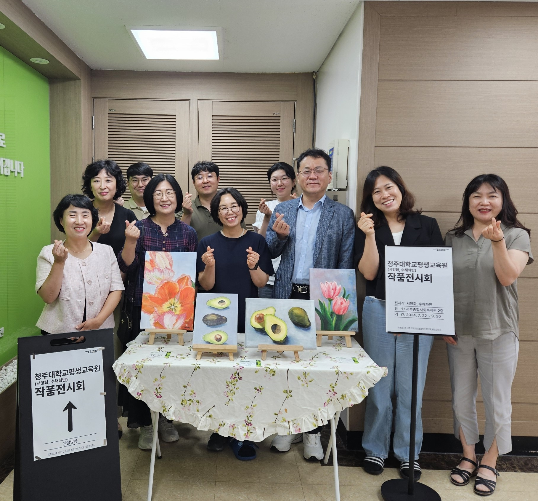 지난 7월 26일, 우리대학 평생교육원은 올해 봄학기 성인 학습자를 대상으로 운영한 각종 강좌를 통해 선정한 작품을 청주 서부종합사회복지관에서 무료로 전시회를 진행하고 있다고 밝혔다.