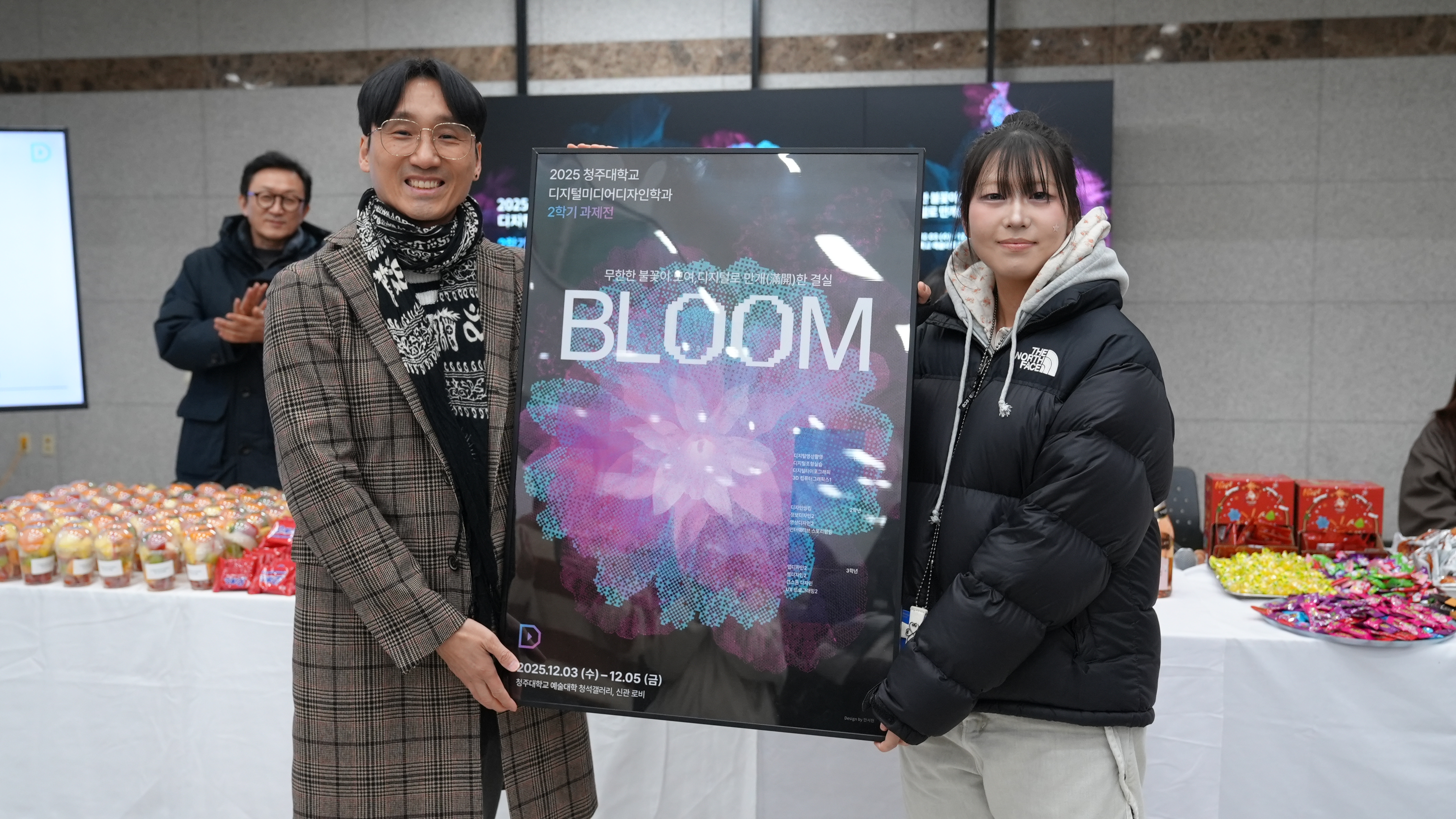 ![]() ![]() ![]() ![]() 청주대학교 디지털미디어디자인학과는 12월 3일(수)부터 5일(금)까지 예술대학 신관 청석갤러리에서 2025학년도 2학기 전공 과제전시를 진행한다. 본 전시는 ‘BLOOM’를 주제로 한 학기 동안의 수업과 과제를 바탕으로 학생들이 직접 기획하고 설치한 다양한 작품들을 선보였다.