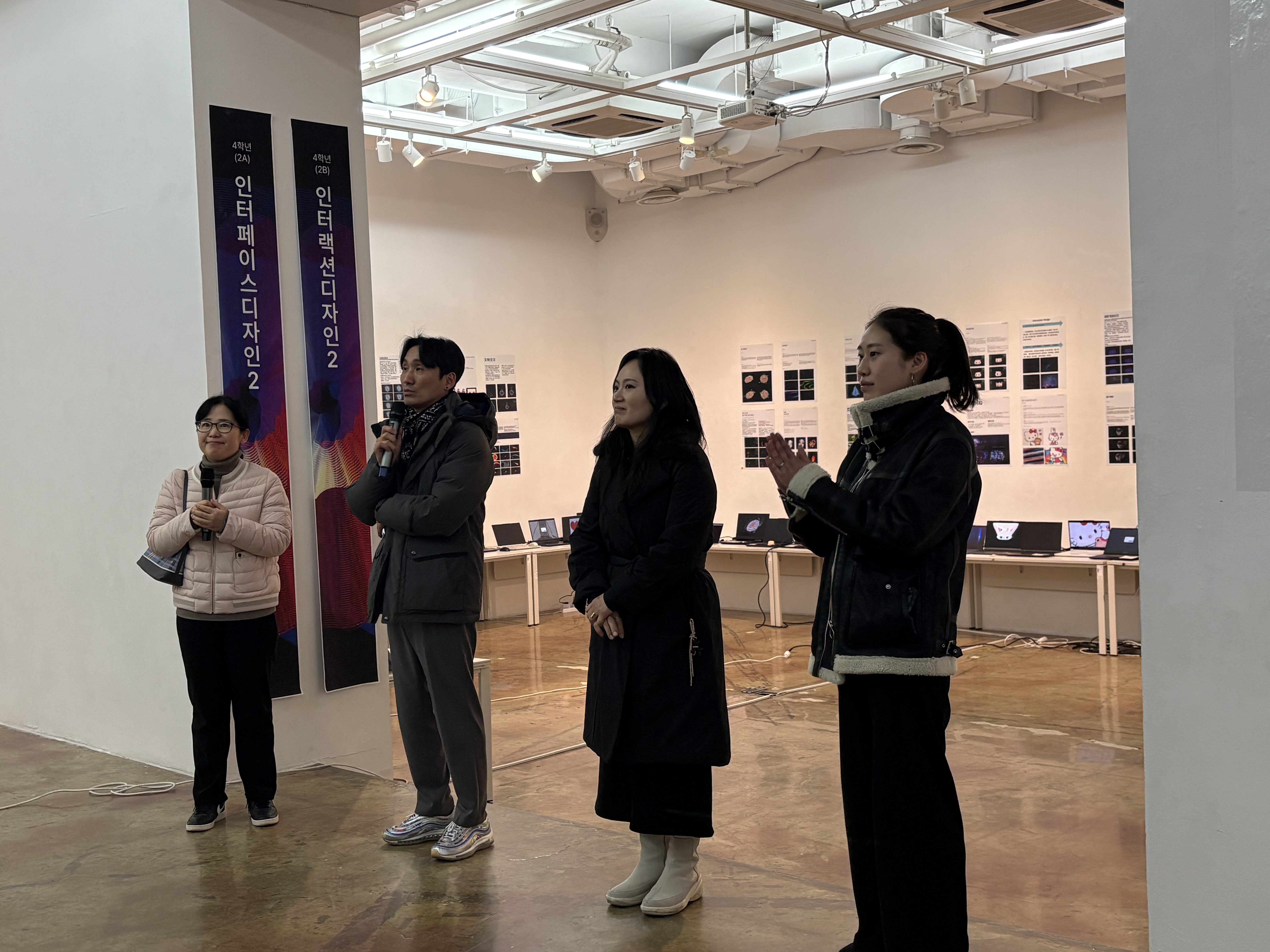 이번 전시는 학과 내 이중언어 유학생 약 61명이 참여하여, 한 학기 동안 진행한 프로젝트와 수업 결과물을 중심으로 다양한 작품을 선보였다. 특히 인터페이스디자인과 인터랙션디자인 교과목을 연계한 전시로, Unity와 TouchDesigner 등 실시간 미디어 툴을 활용한 인터랙티브 콘텐츠들이 눈길을 끌었다. 학생들은 이번 전시를 통해 UI·UX 설계, 시각적 반응 인터페이스, 실시간 모션 기반 조작 등 기술적 실험을 시도하며, 사용자 참여 중심의 작품들을 구현했다. 재학생들끼리 결과물을 공유하고 피드백을 주고받는 과정에서 서로의 표현 방식과 아이디어를 교류할 수 있는 시간이 되었다. 장성복 디지털미디어디자인학과 학과장은 “이중언어 과제전은 언어와 미디어, 기술이 결합된 실험적인 수업 성과를 보여주는 자리”라며 “학생들이 창의적 인터페이스와 인터랙션 디자인 능력을 더욱 발전시킬 수 있도록 지속적으로 지원하겠다”고 전했다. |