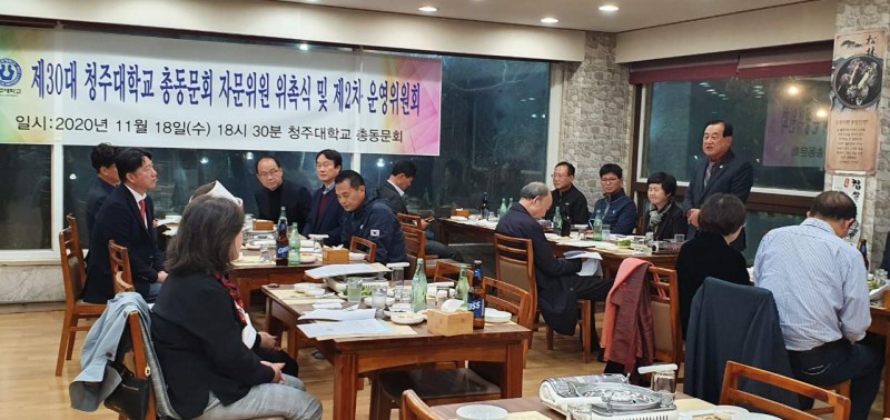 제30대 청주대학교 총동문회 2차 운영위원회가 11월 18일(수) 저녁 청주시내의 한 음식점에서 30여명이 참석한 가운데 열렸습니다.