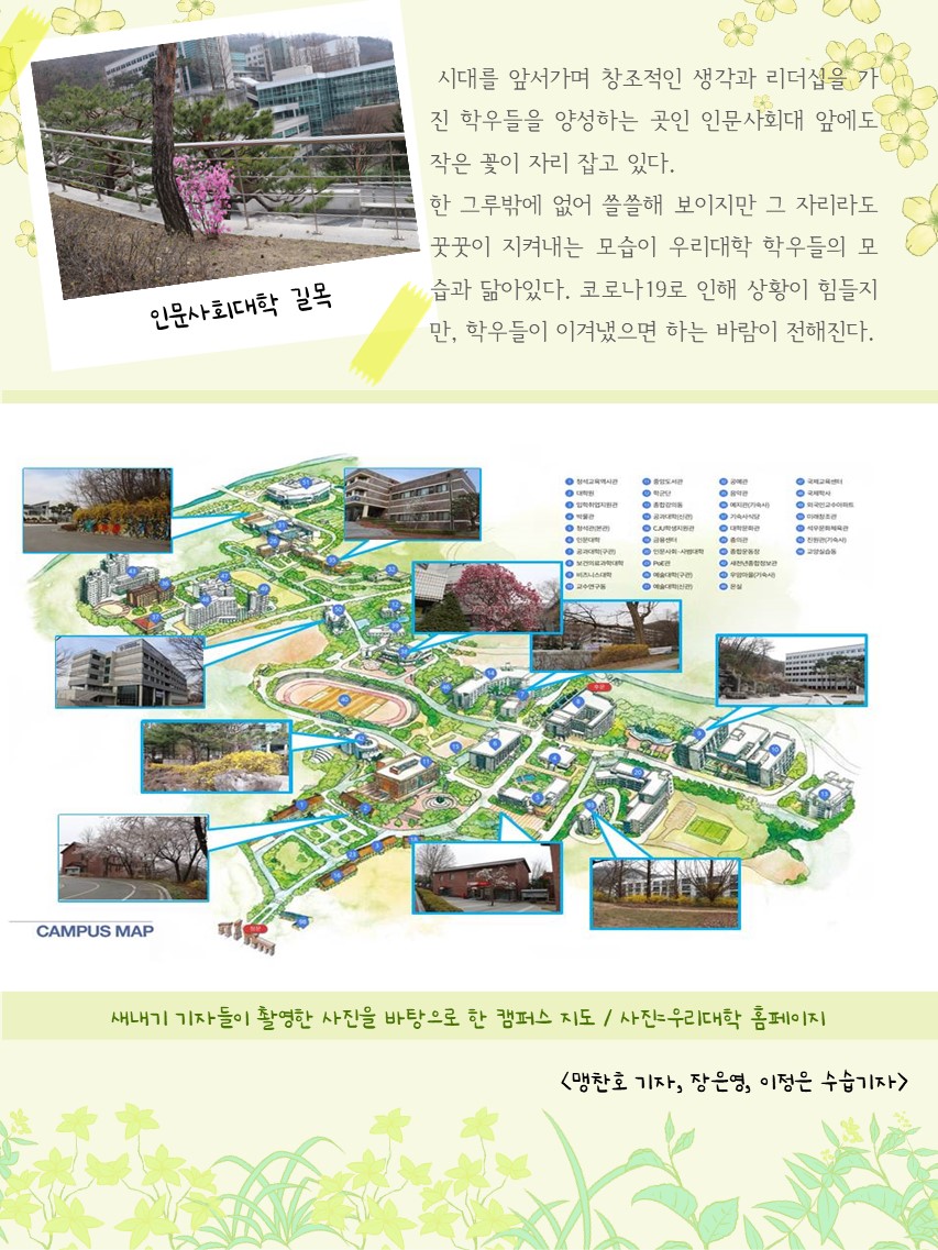 기획 홈 청대신문 기획 프린트 기획 상세보기, 제목, 카테고리, 내용, 파일등의 정보를 제공합니다. 제목 【기획】 새내기 기자들의 눈으로 본 우리대학 - 만연한 봄 기운을 느끼며 카테고리 기획 ∎ ∎ ∎ ∎ 파일 기획1.pdf 목록 이전글 【기획】 총학생회와 노조, 52일 간의 이야기 – 단식농성 중단과 고소 취하 다음글 【기획】 다양한 전공을 경험할 기회 - 창의적 융합 인재가 되기 위한 발돋움
