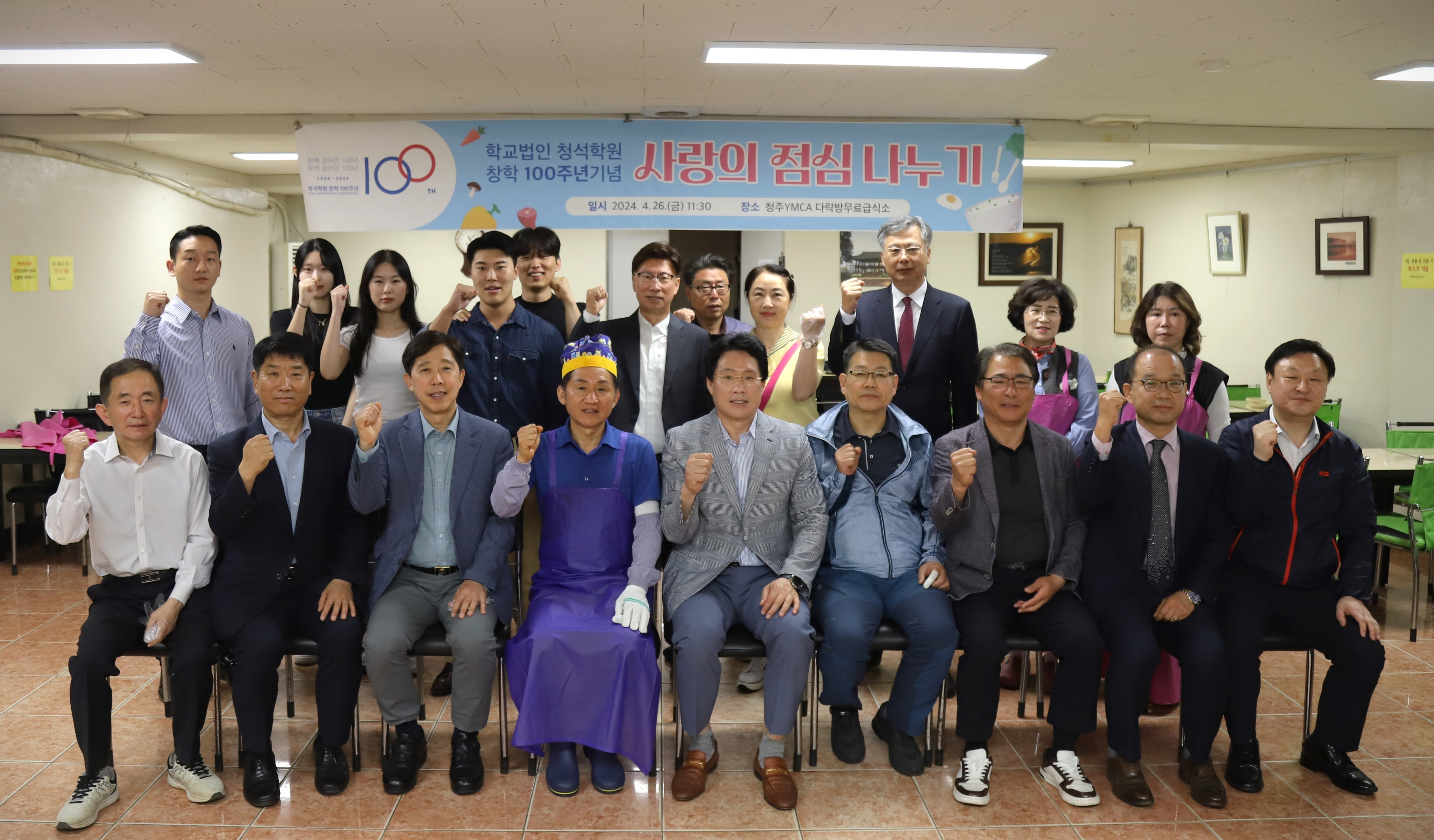학교법인 청석학원 창학 100주년 기념사업회가 청주 중앙공원에서 ‘사랑의 점심 나누기’ 봉사활동을 펼쳤다.