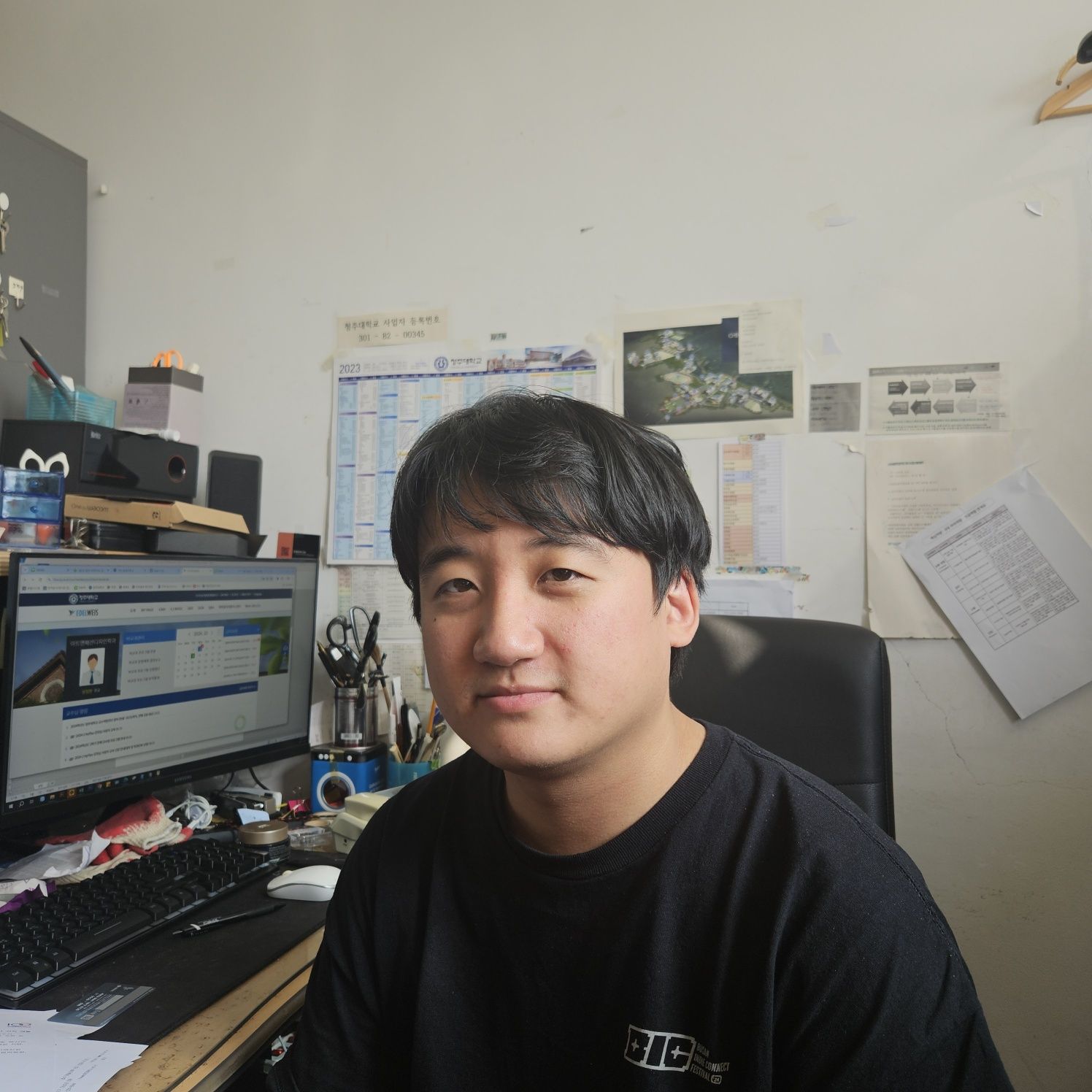 류 조교는 “아침에 출근을 하면 강의실 문을 열고 교수님 수업을 돋는 일로 하루를 시작한다”고 말했다. 이어 주로 담당하는 업무에 대해 “학과에 필요한 물품을 구매하거나 학과 행사 일정을 작성하는 일을 하고 있다”며 “물품구매나 학과 행사 일정 이외에는 무거운 것을 나르거나, 망가진 부분을 고치거나, 컴퓨터를 포함한 각종 전자제품 세팅 등등 손이 많이 가는 일들을 주로 맡고 있다”고 설명했다.