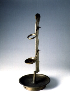 | 유물명 | 놋쇠등잔받침(鍮製燈架) | | Brass Lamp Stand | | 크기 | 높이 58㎝ | | 소장기관 | 청주대학교 박물관 | 놋쇠로 제작되었으며 밑판은 커다란 접시모양으로 밑에 넓고 밖으로 약간 벌어진 굽다리가 있고 가장자리는 외반되어 전을 형성하였다. 竿柱는 납작한 판형으로 4단으로 된 걸이를 두어 등의 높낮이를 조절할 수 있게 하였으며 위에는 등잔걸이, 아래에는 기름받이를 걸어 기름이 바닥에 떨어지는 것을 막았다. 상단부는 둥글게 처리되었다. | 유물정보의 설명 및 사진에 대한 저작권은 청주대학교박물관에 있으며, 청주대학교박물관의 동의 없이 소장품 정보를 무단으로 복제하거나, 상업적으로 이용할 수 없습니다. |