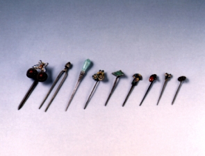 | 유물명 | 뒤꼬지 | | Hairpins | | 크기 | 길이 6.2~11.5㎝ | | 소장기관 | 청주대학교 박물관 | 조선시대 여인들이 쪽진머리에 꽂아 장식하던 장신구의 하나로 주로 은으로 만들었으며 보석과 칠보 등의 화려한 장식이 가미되어 사치스럽게 만들었다. 또한 사대부가 여인들이 항상 쪽머리에 꽂아 장식하였으며 비녀와 같이 계절을 가려 사용하였다. 겨울철에는 마노와 밀화를, 봄가을에는 칠보를, 그리고 여름에는 옥 비취 산호를 사용하였다. | 유물정보의 설명 및 사진에 대한 저작권은 청주대학교박물관에 있으며, 청주대학교박물관의 동의 없이 소장품 정보를 무단으로 복제하거나, 상업적으로 이용할 수 없습니다. |