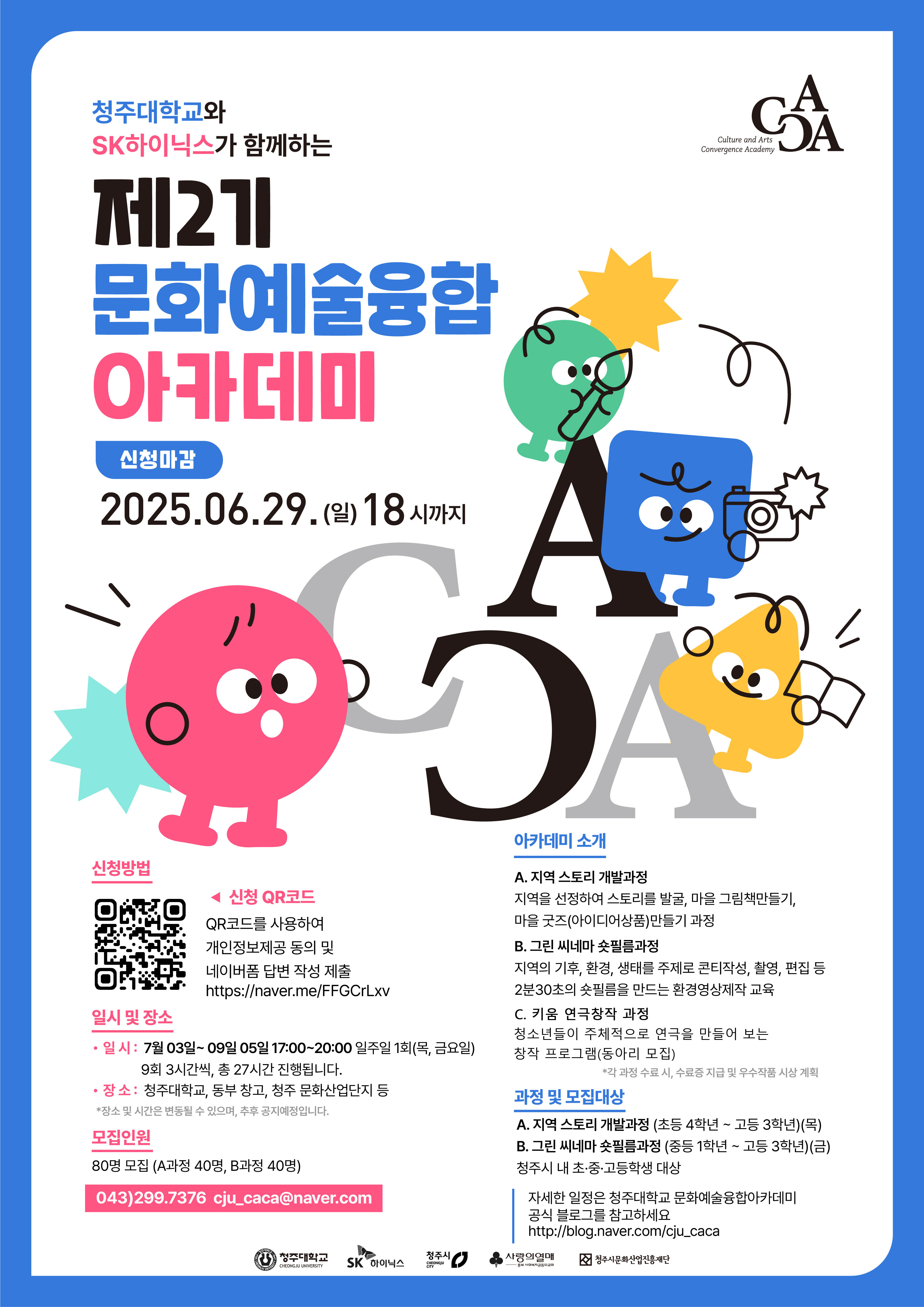 2025학년도 2기 CACA(문화예술융합아카데미)는 청주대학교와 SK하이닉스가 문화예술 융합 콘텐츠를 통해 학생들의 창의력과 소통능력, 융복합 능력을 키워 미래의 문화예술 인재를 양성하는 것을 목표로 진행되는 프로그램이다.