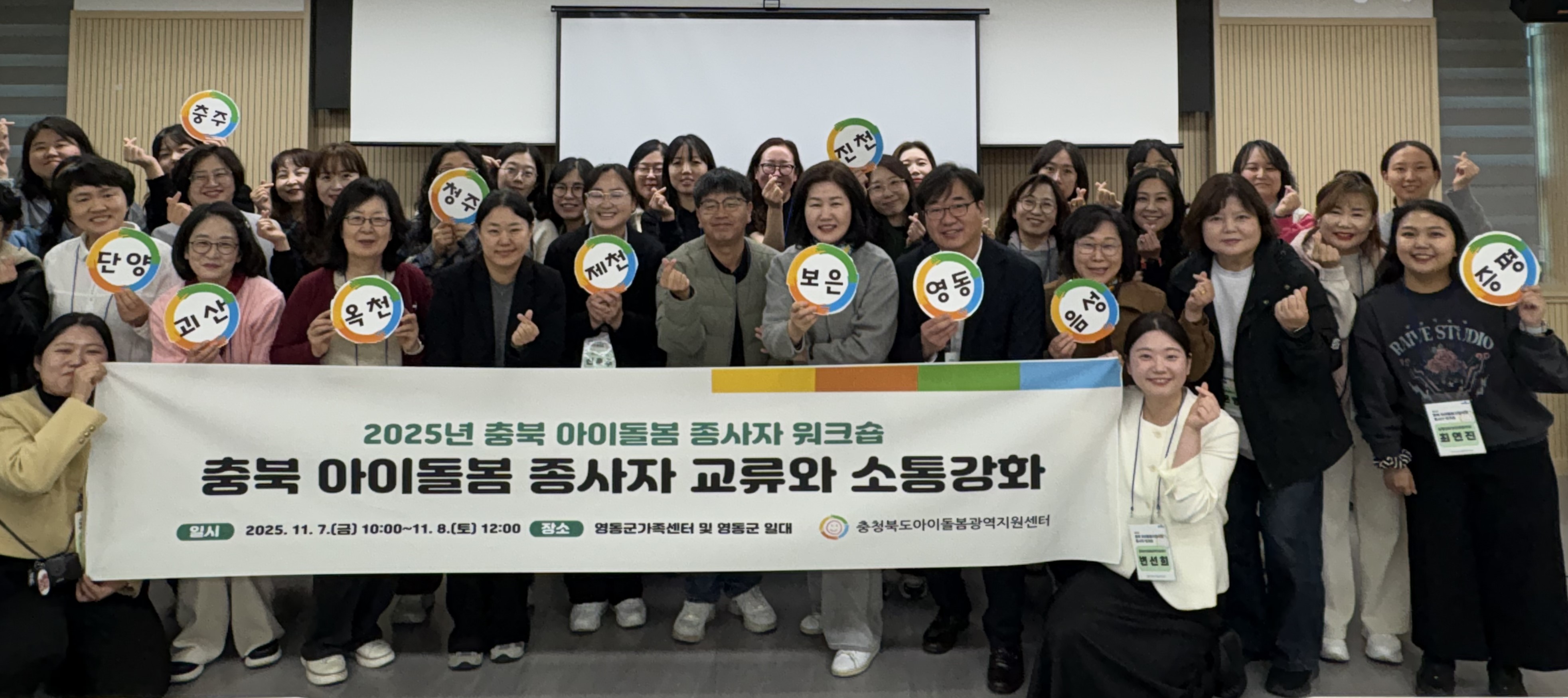 [ 청주대, 충북 아이돌봄 종사자 워크숍 개최 ] 충북아이돌봄광역지원센터- 실무자 역량강화 청주대학교(총장 김윤배) 산학협력단에서 위탁·운영하는 충청북도아이돌봄광역지원센터는 지난 7일부터 1박2일간의 일정으로 영동군 일대에서 ‘2025 충북 아이돌봄 종사자 워크숍’을 개최했다고 8일 밝혔다.