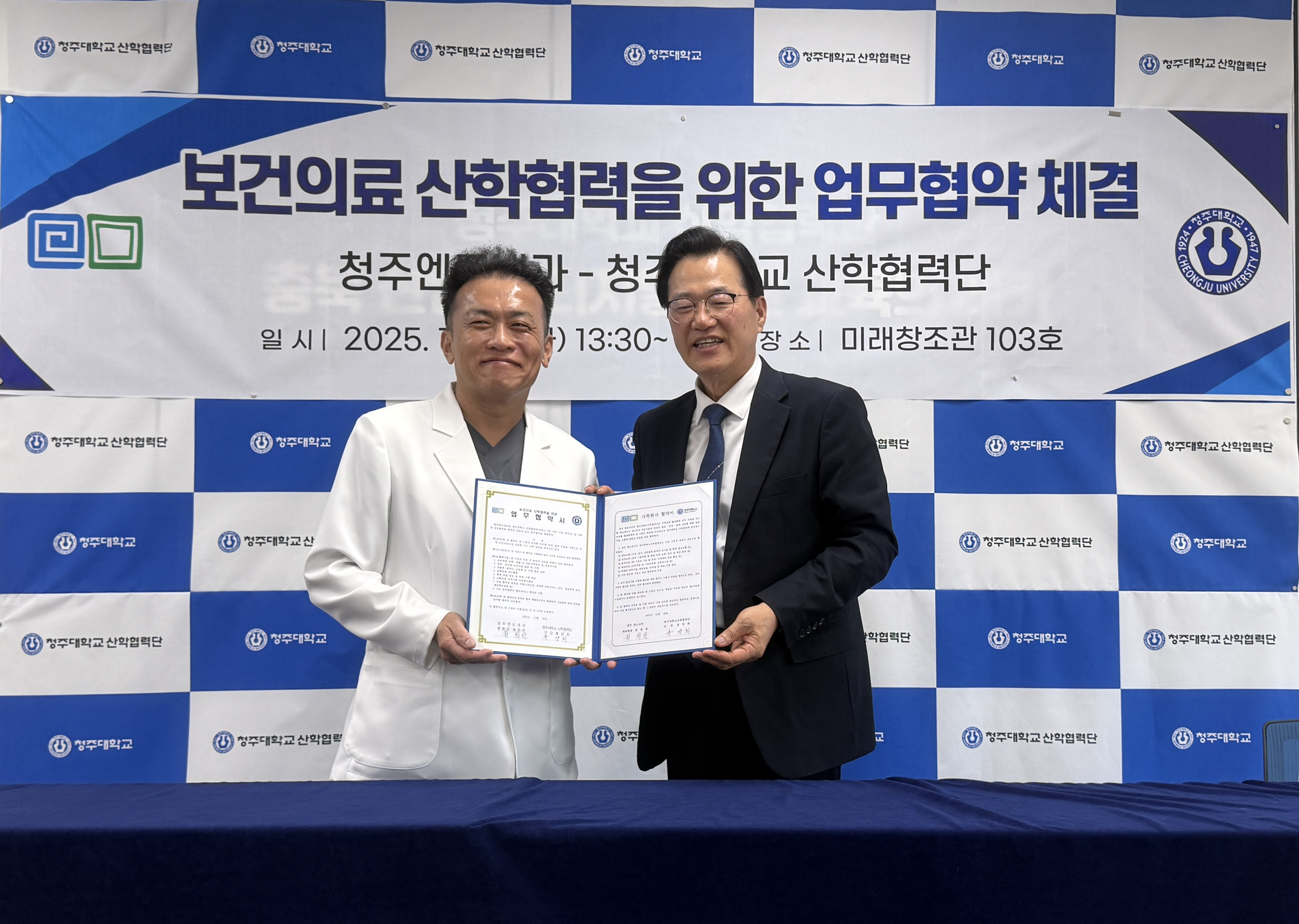 [ 청주대 산학협력단, 보건의료 산학협력 업무협약 ] 청주엔도내과와 지역사회 의료봉사활동 등 협약 청주대학교(총장 김윤배) 산학협력단은 청주엔도내과와 ‘보건의료 산학협력을 위한 업무협약’을 체결했다고 21일 밝혔다.