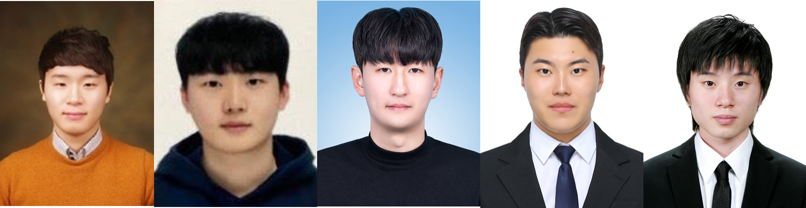사진설명 : 왼쪽부터 임군수 박사후 연구원, 인요한, 김승재, 강지혁, 정지만 대학원생 순이다. |