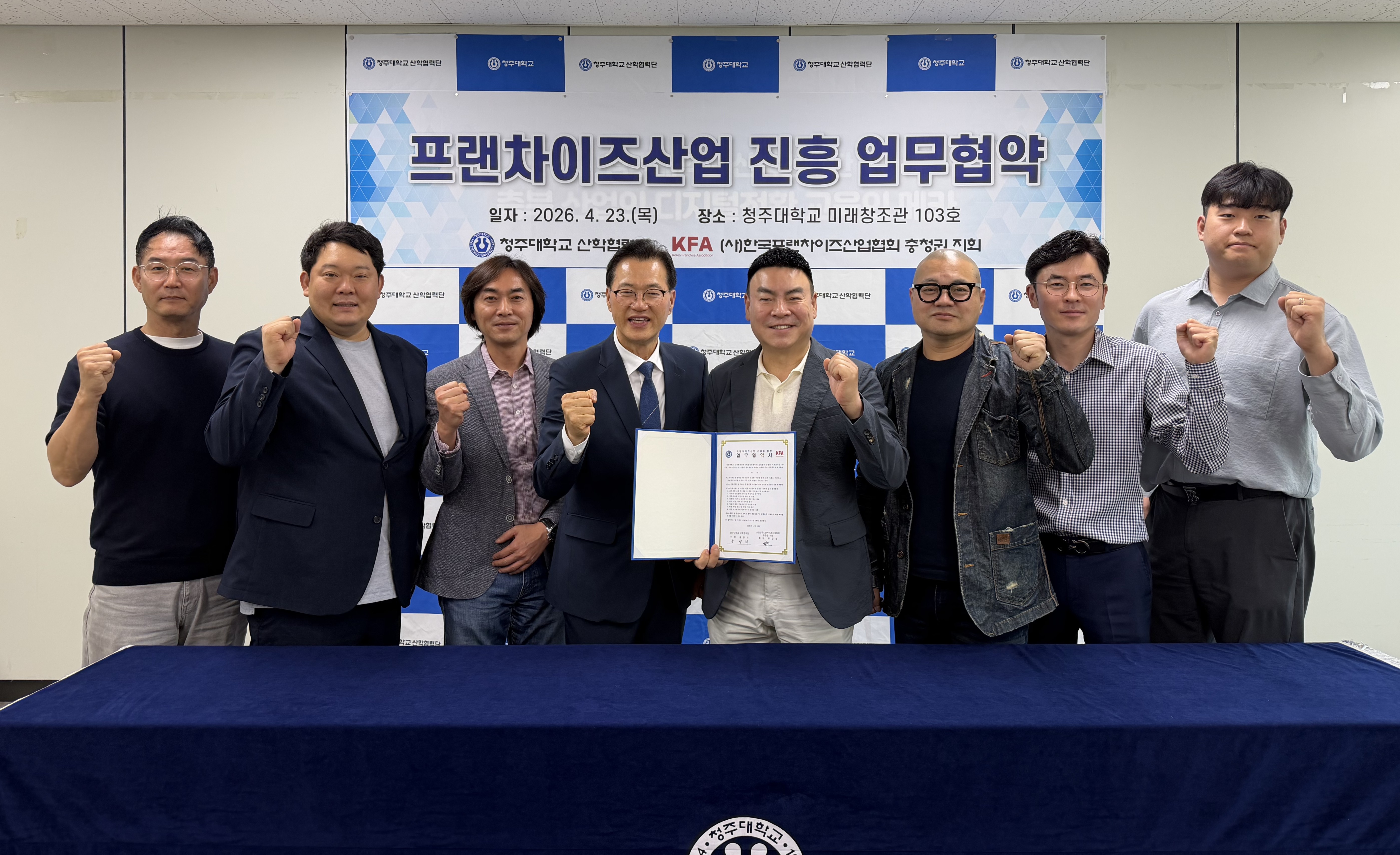 이날 협약식에 청주대 홍양희 산학협력부총장, 연제은 산학협력단 교수, 유인성 한국프랜차이즈산업협회 충청지회장 등이 참석했다.