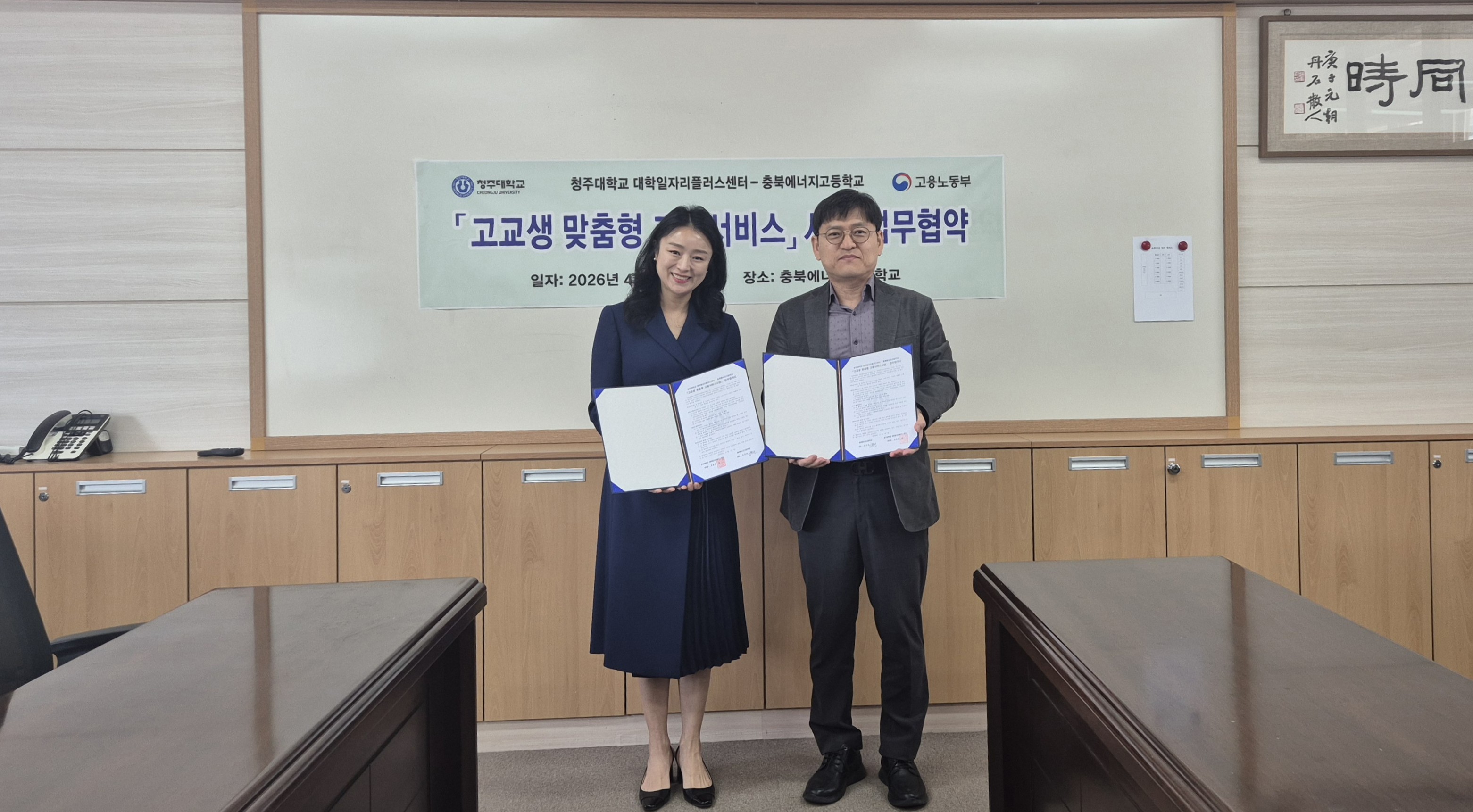 [ 청주대·충북에너지고, 고교생 고용서비스 지원 ‘맞손’ ] 지역 학생 취업역량 강화·현장 중심 고용서비스 기대 청주대학교(총장 김윤배) 대학일자리플러스센터는 고용노동부 고교생 맞춤형 고용서비스 사업의 성공적 운영을 위해 충북에너지고등학교와 업무협약을 했다고 29일 밝혔다.
